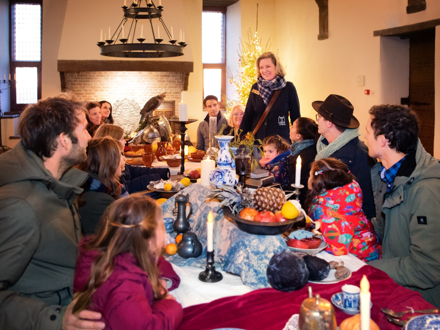 Wie weet wat voor mooie Kerstfeesten ridder Dirc Loef van Horne hier gehouden heeft, hij had immers geld in overvloed. Zijn kerstdiners waren vast heel extravagant met middeleeuwse gerechten zoals fazantpastei en brood met amandelmelk. Hugo de Groot had het minder luxe. Als gevangenen at hij ‘erwtensoep met maar twee erwten’ en gepekelde vis. Niet echt een feestmaal dus. Onze gidsen vertellen je in de kerstvakantie nog veel meer over het winterse leven op Loevestein.
